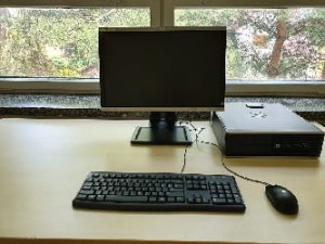Stanowiska komputerowe wyposażone w klawiaturę, mysz i niezbędne kable