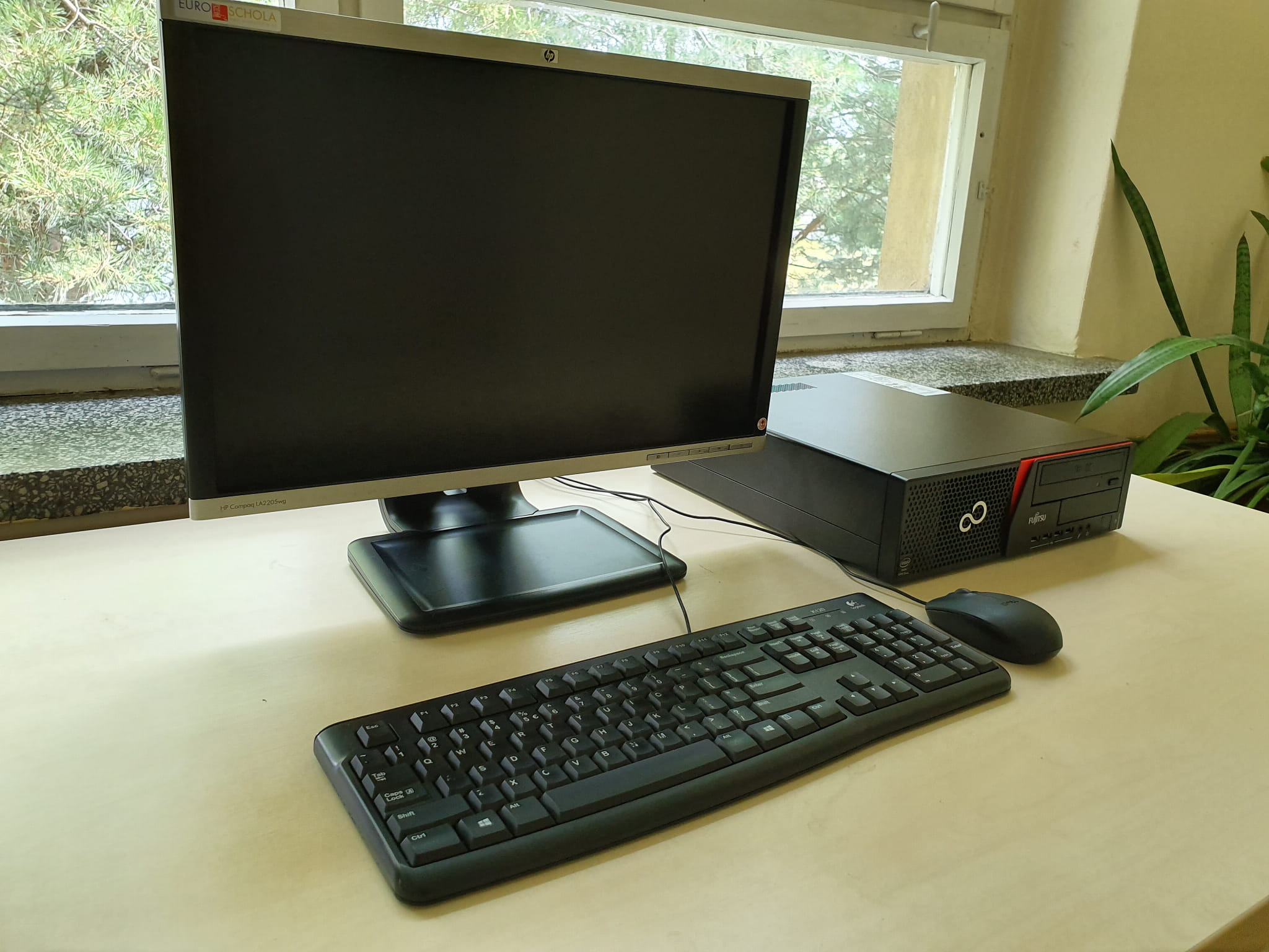 Stanowiska komputerowe wyposażone w klawiaturę, mysz i niezbędne kable